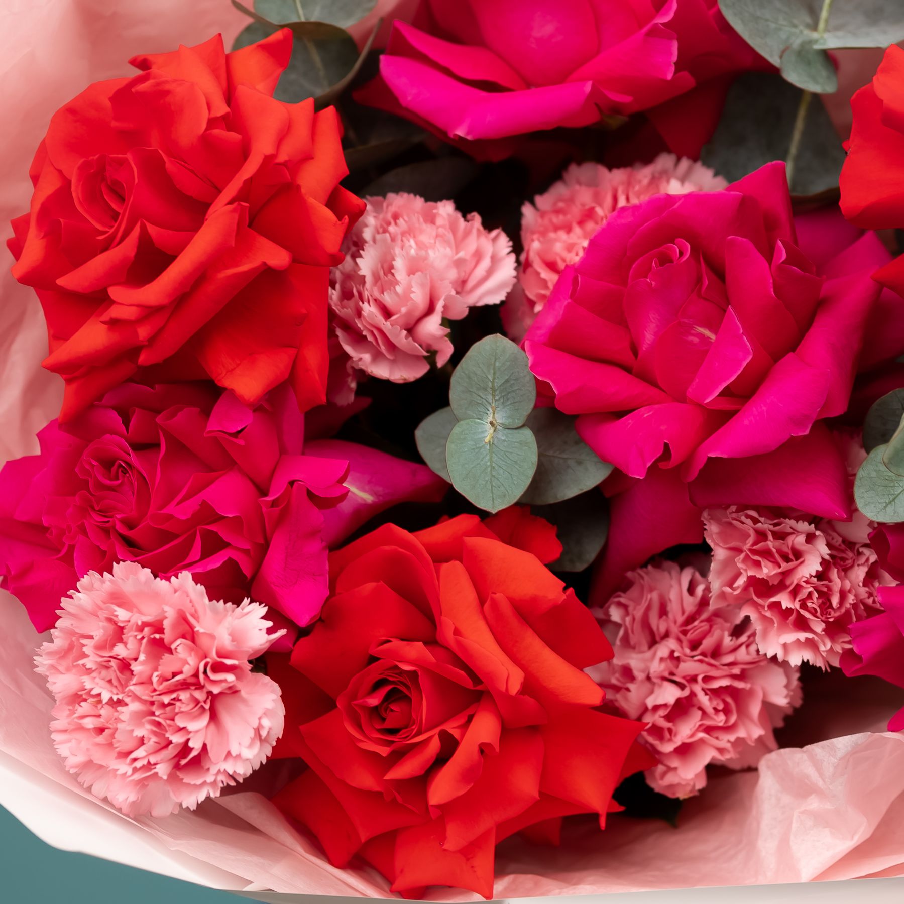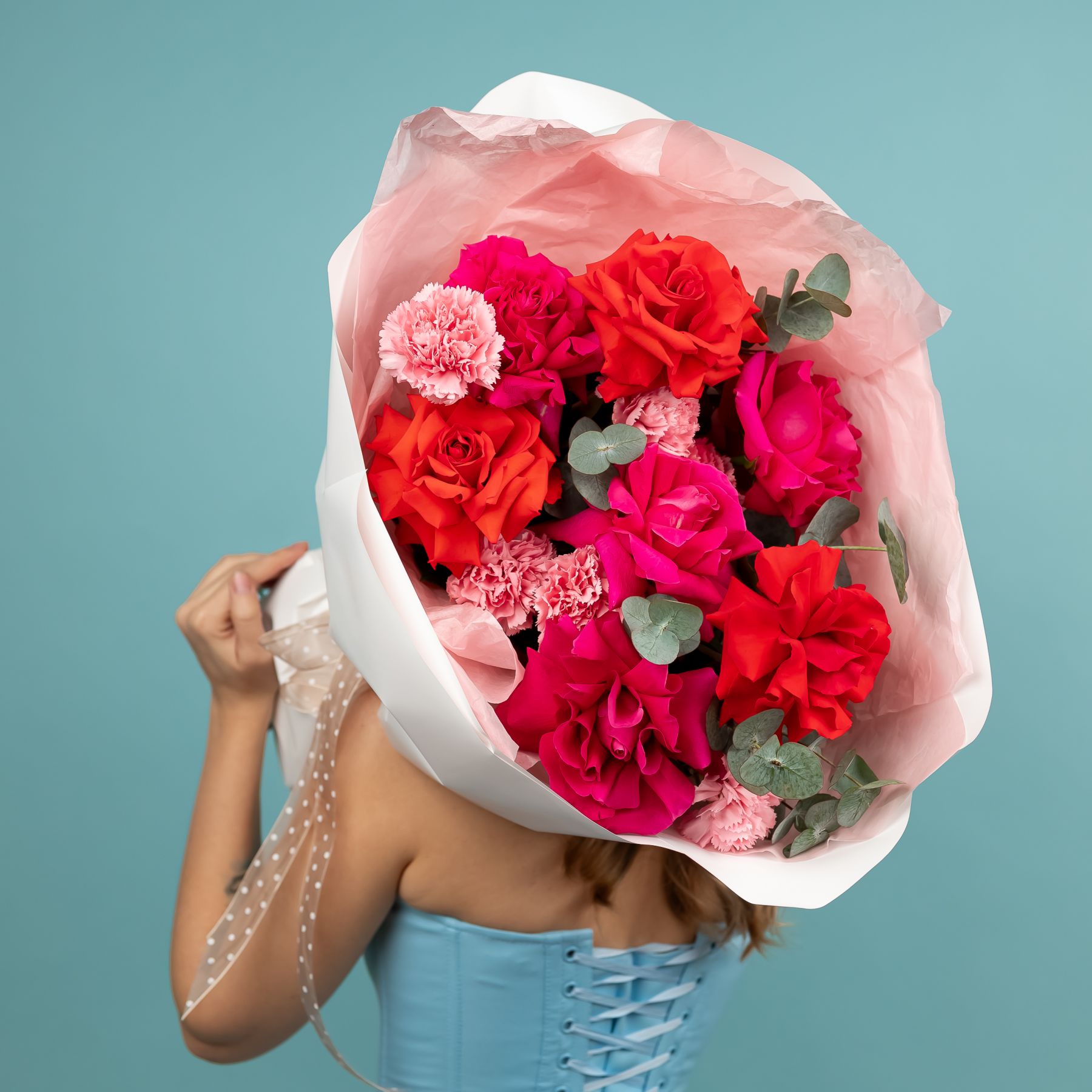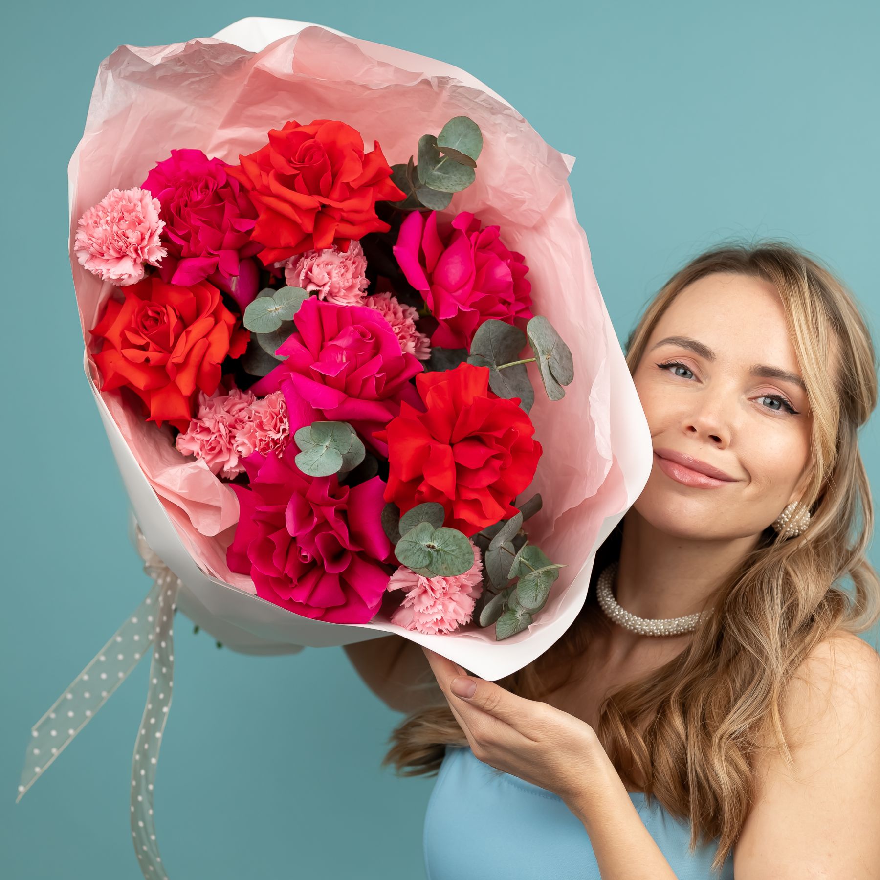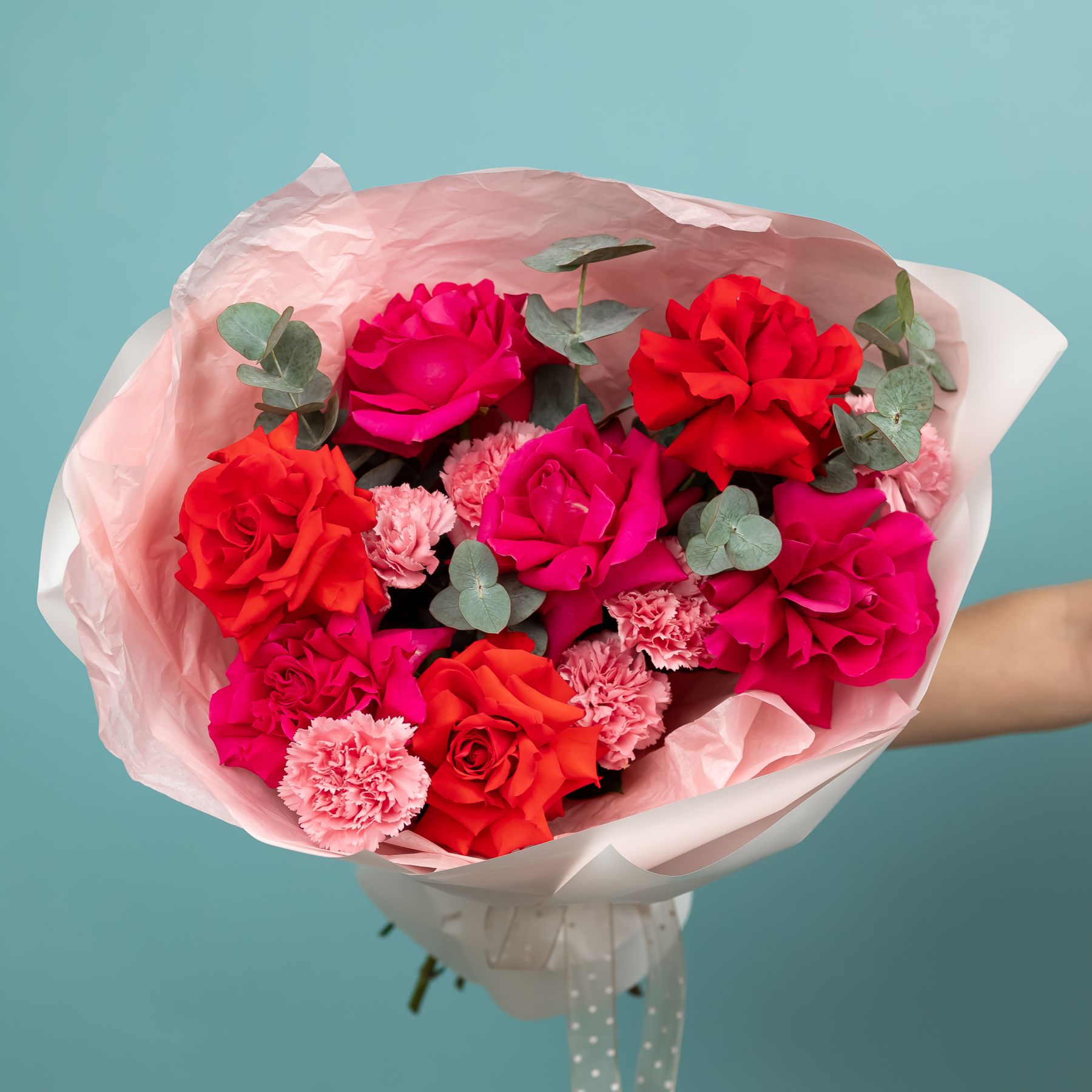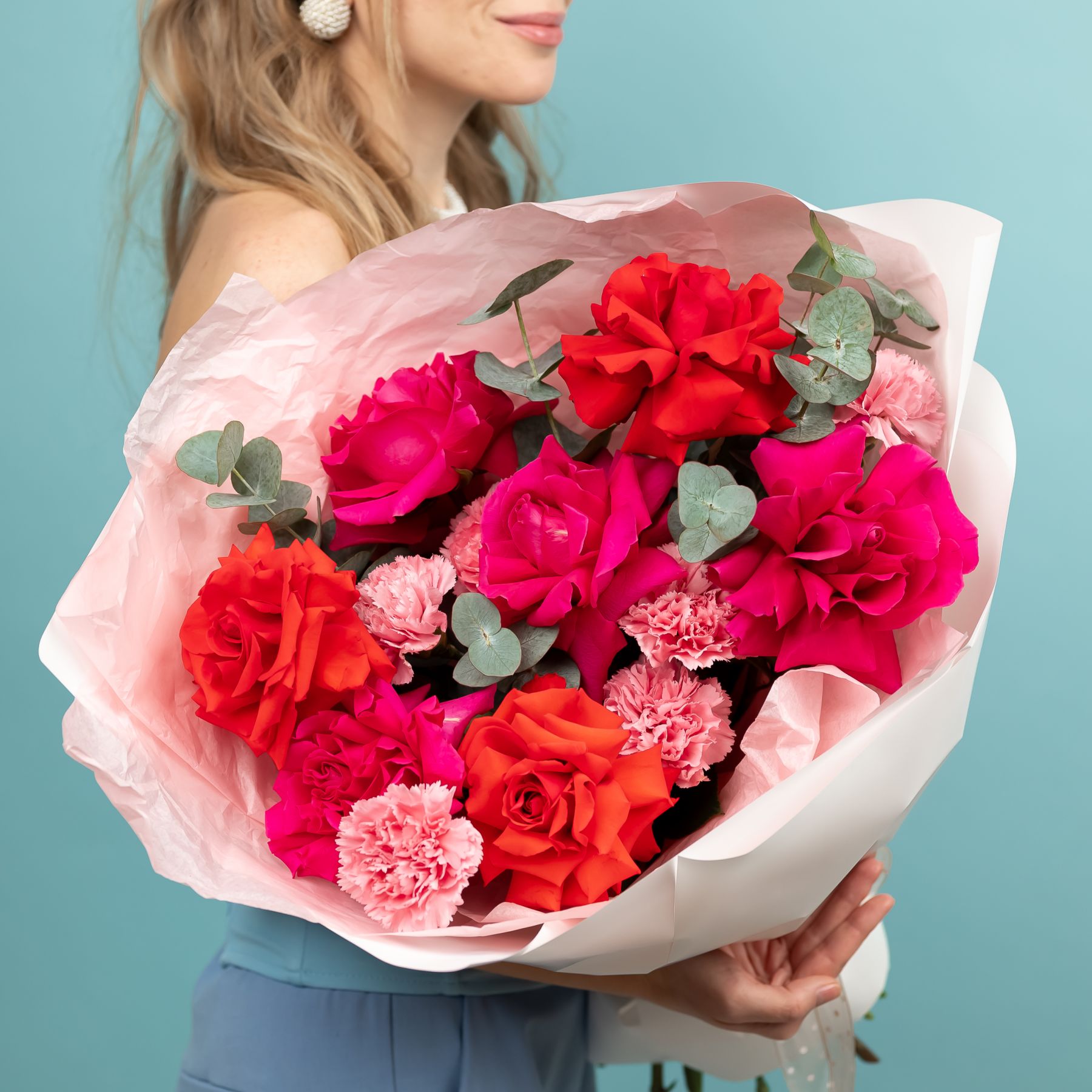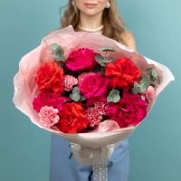 Состав букета может быть изменен исходя из актуального наличия и сезонности цветов, с сохранением цветовой гаммы букета. Топпер представлен как пример. Приобрести его можно в разделе доп.товары.