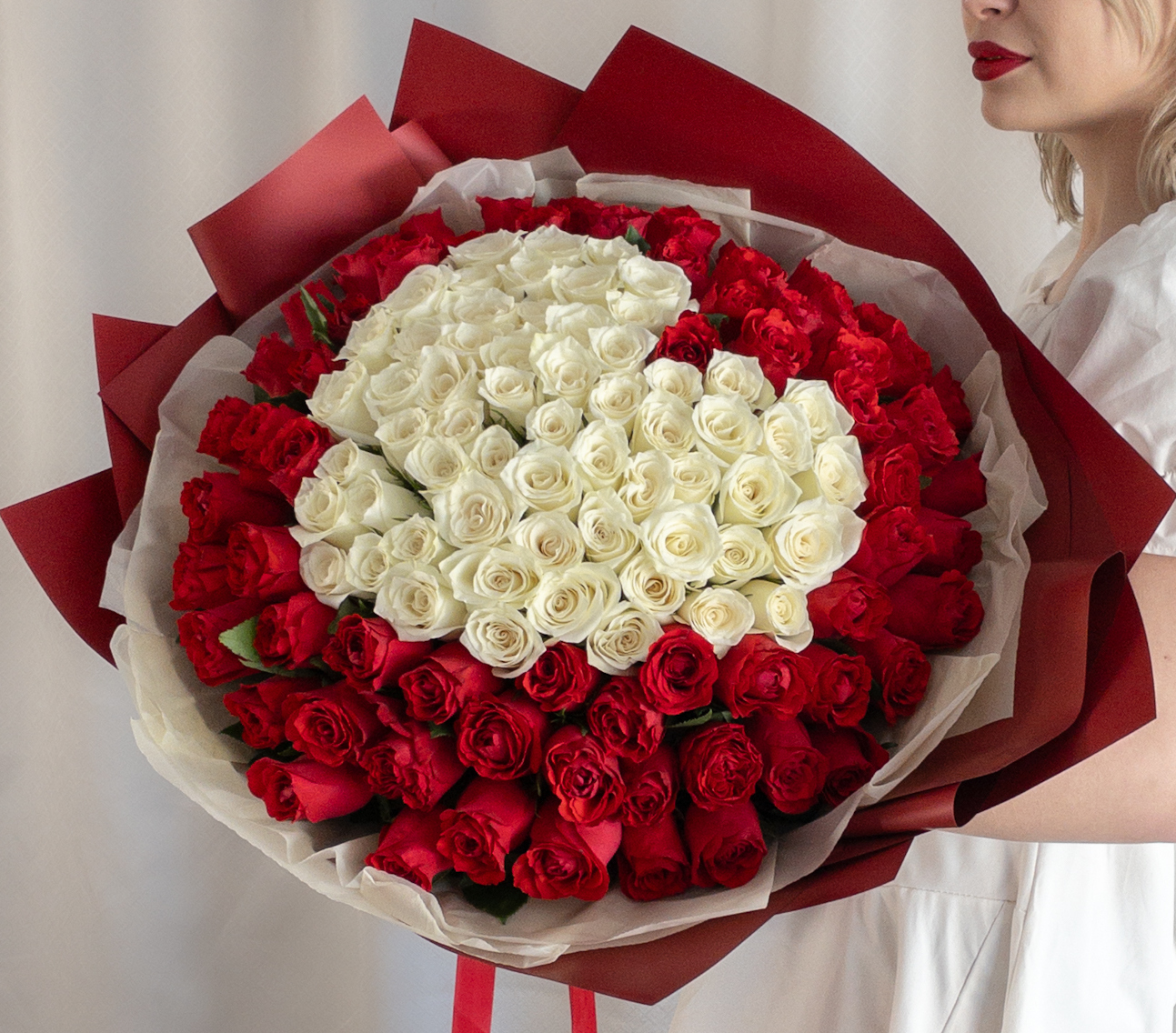 Букет из 101 Розы 50 см «Сердце» в оформлении