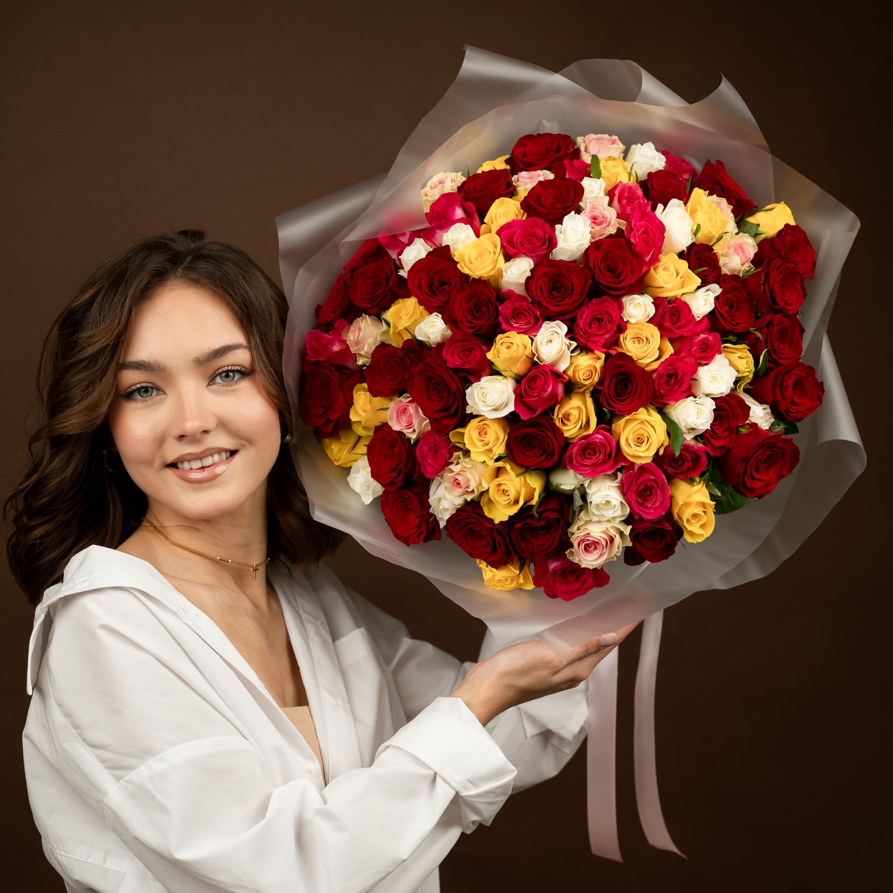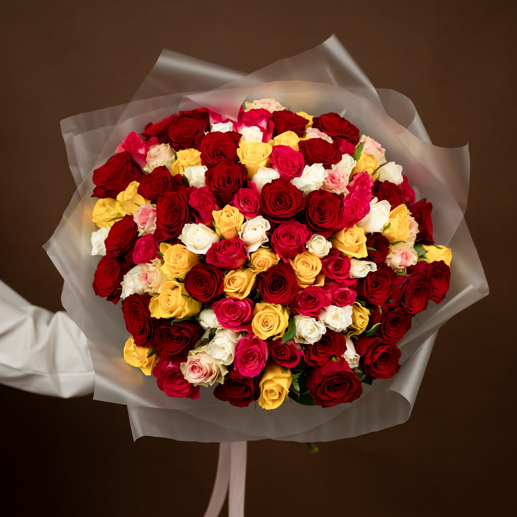 101 роза в оформлении (40 см).