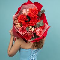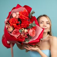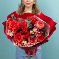 Состав букета может быть изменен исходя из актуального наличия и сезонности цветов, с сохранением цветовой гаммы букета. Топпер представлен как пример. Приобрести его можно в разделе доп.товары.