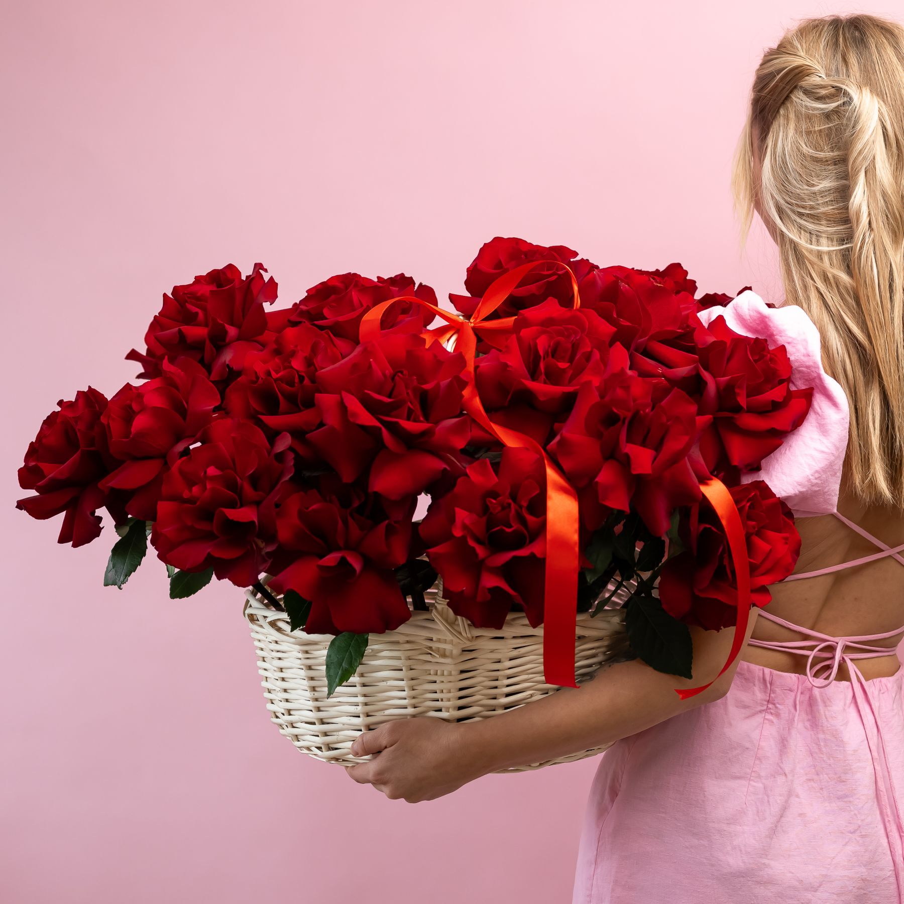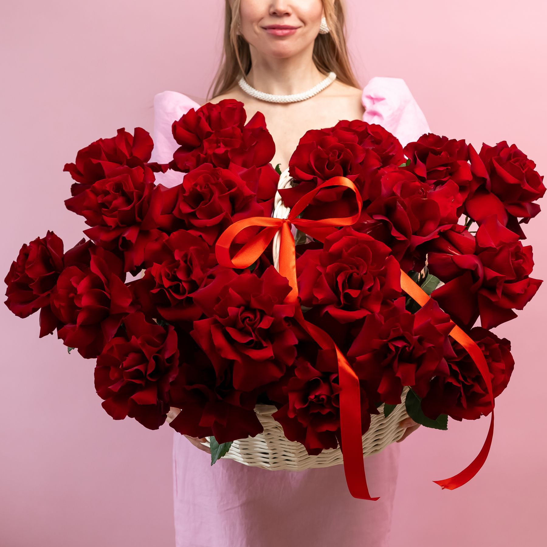 25 Французских роз (Эксплорер) в корзине размер L (40/37)