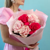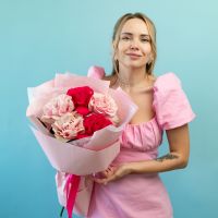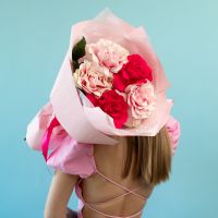 Состав букета может быть изменен исходя из актуального наличия и сезонности цветов, с сохранением цветовой гаммы букета