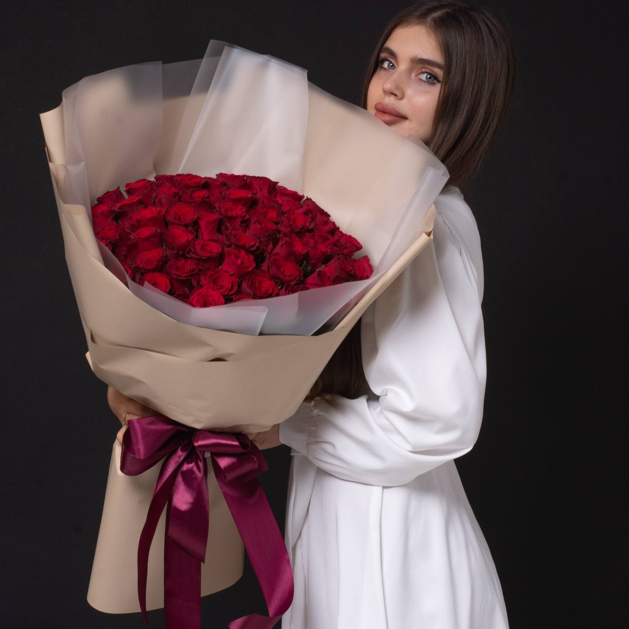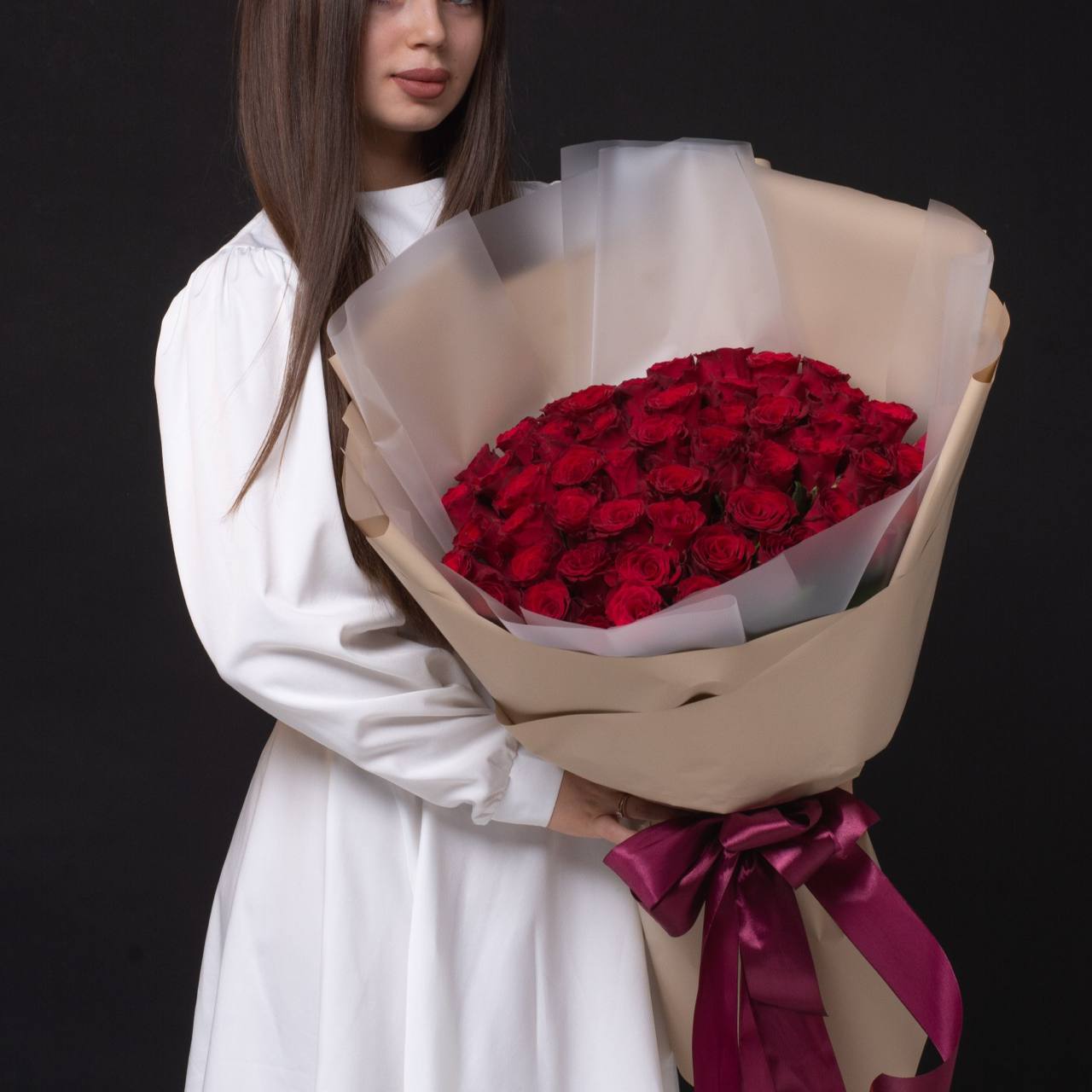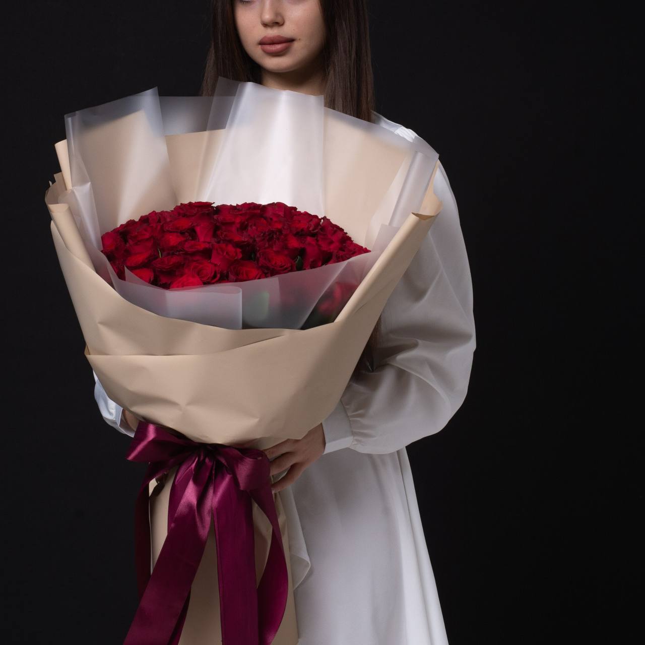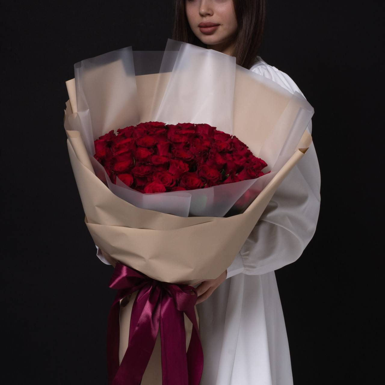 51 роза в оформлении (40 см).