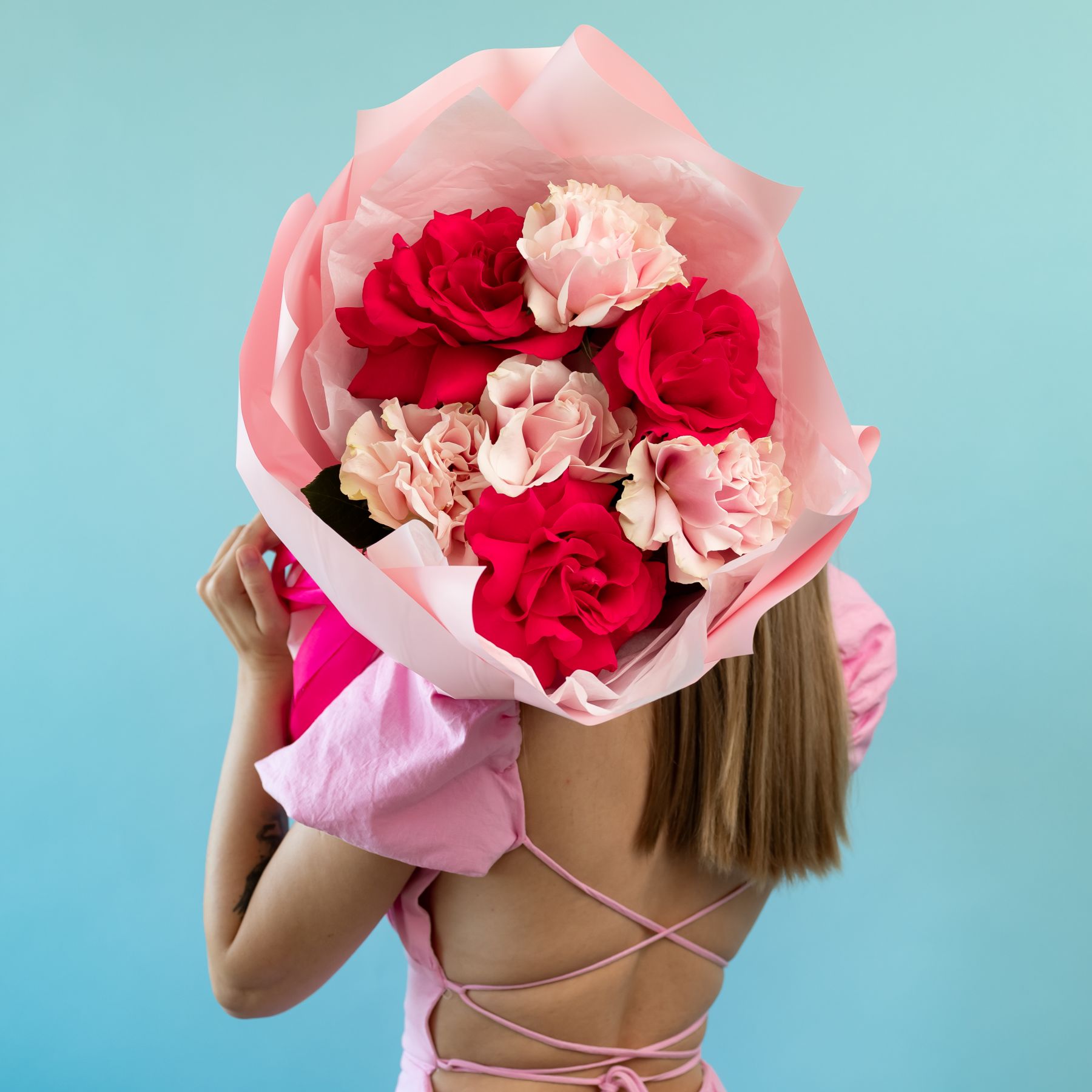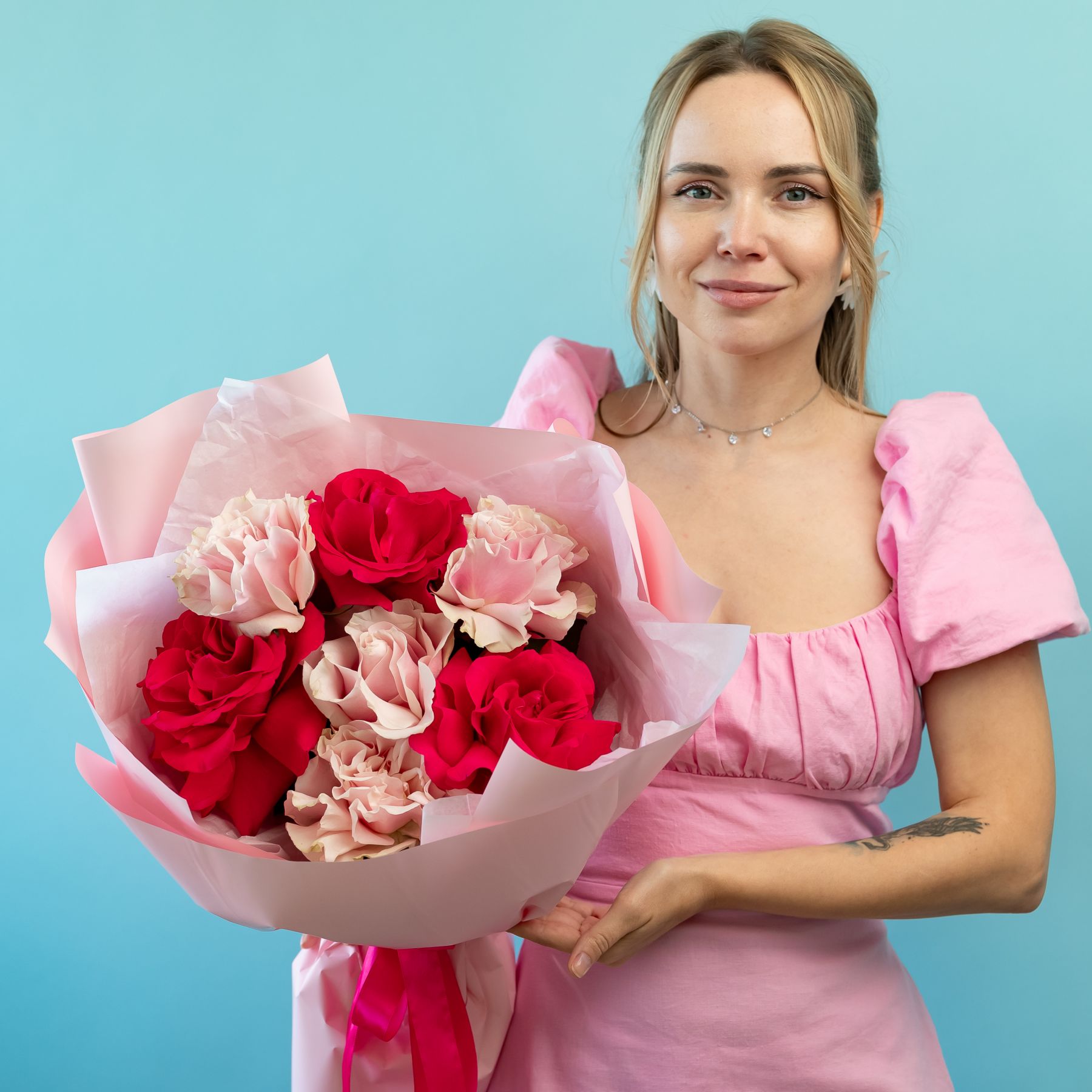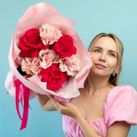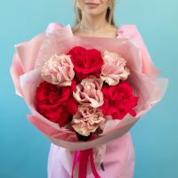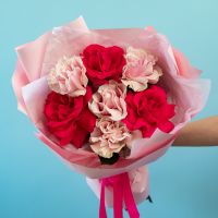 Состав букета может быть изменен исходя из актуального наличия и сезонности цветов, с сохранением цветовой гаммы букета