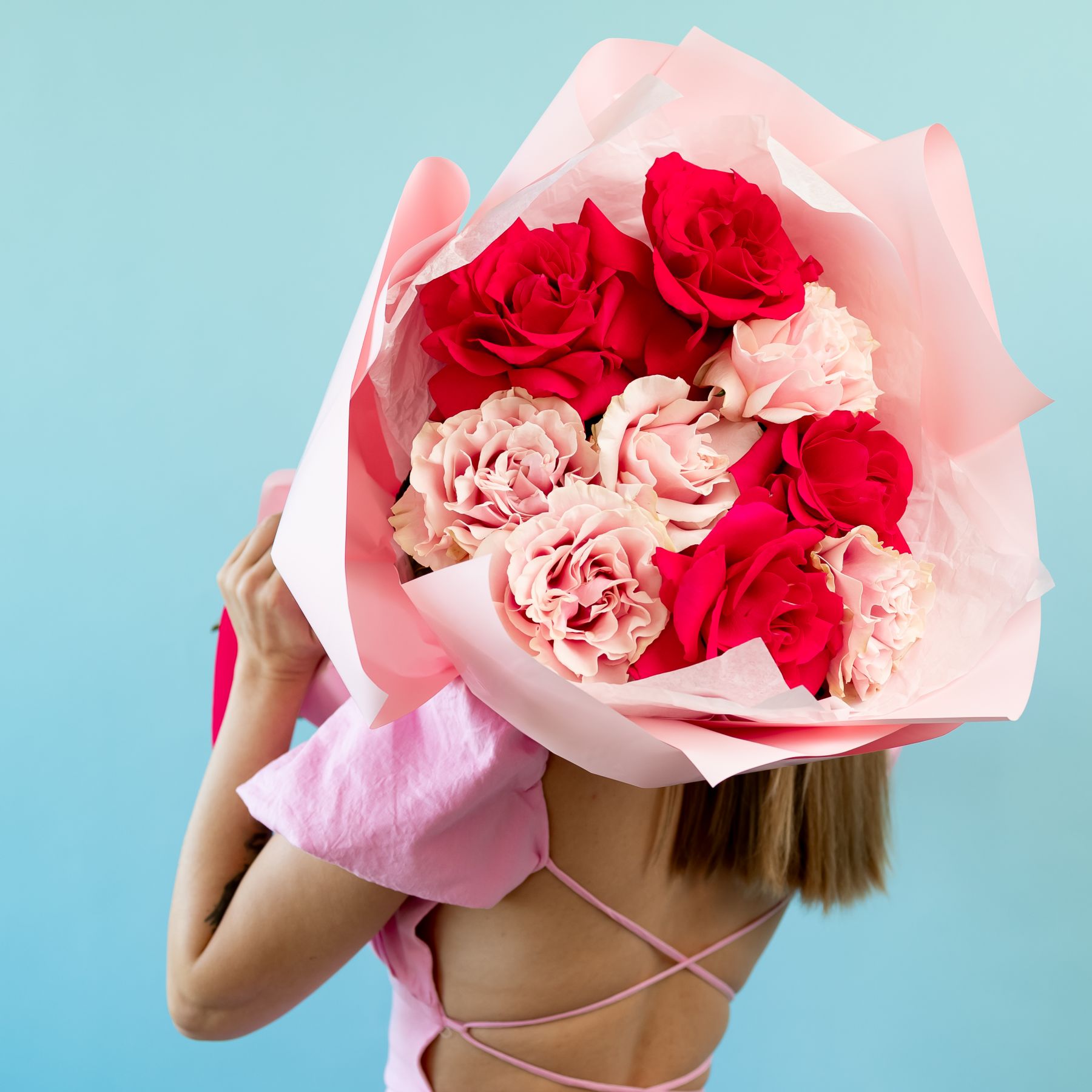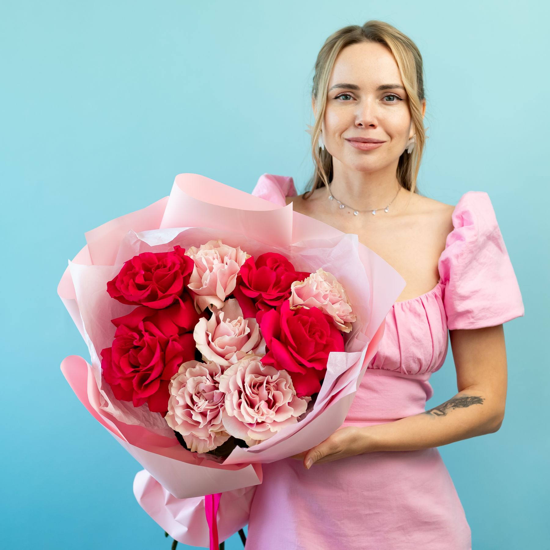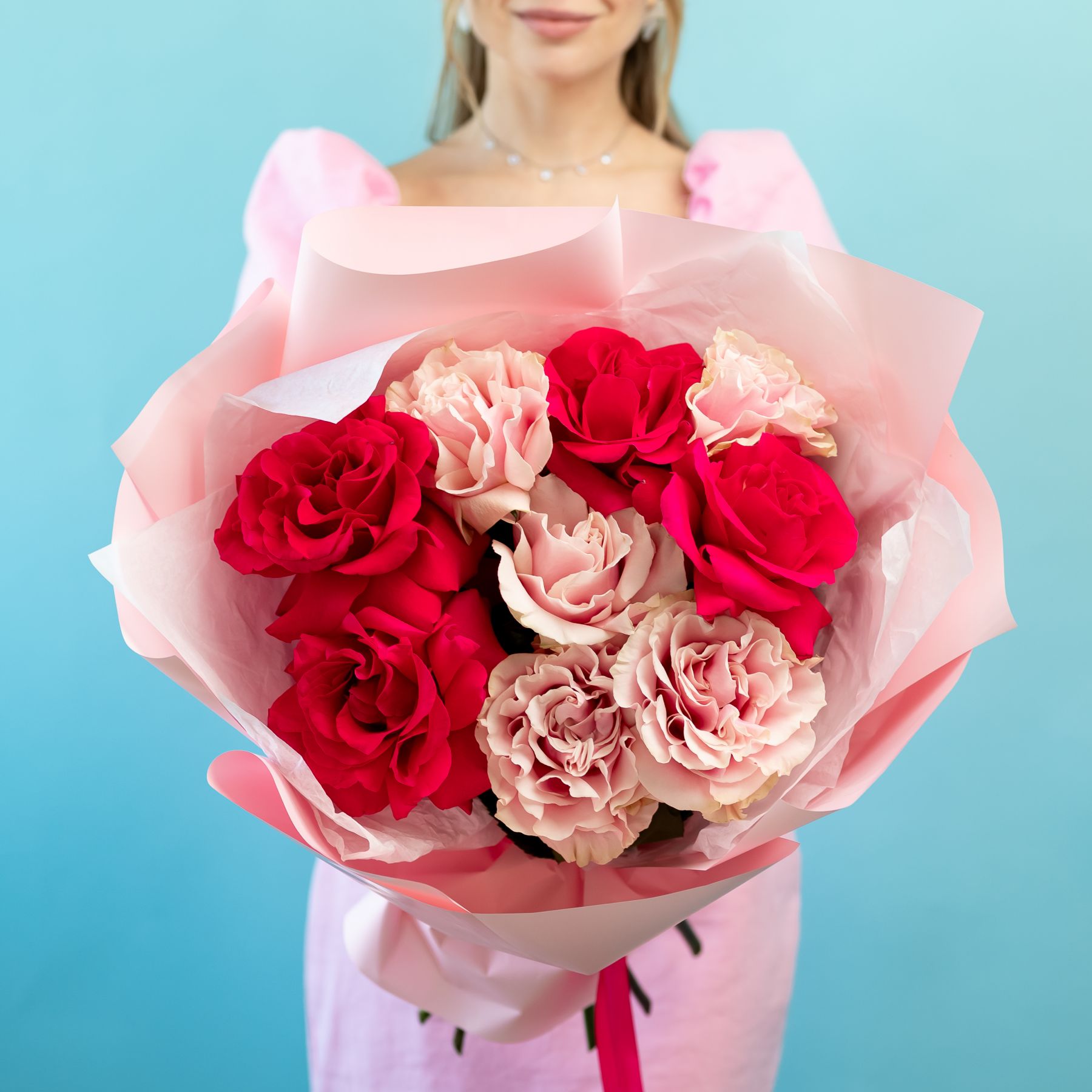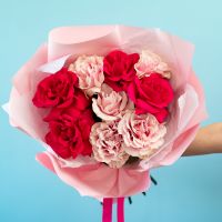 Состав букета может быть изменен исходя из актуального наличия и сезонности цветов, с сохранением цветовой гаммы букета