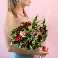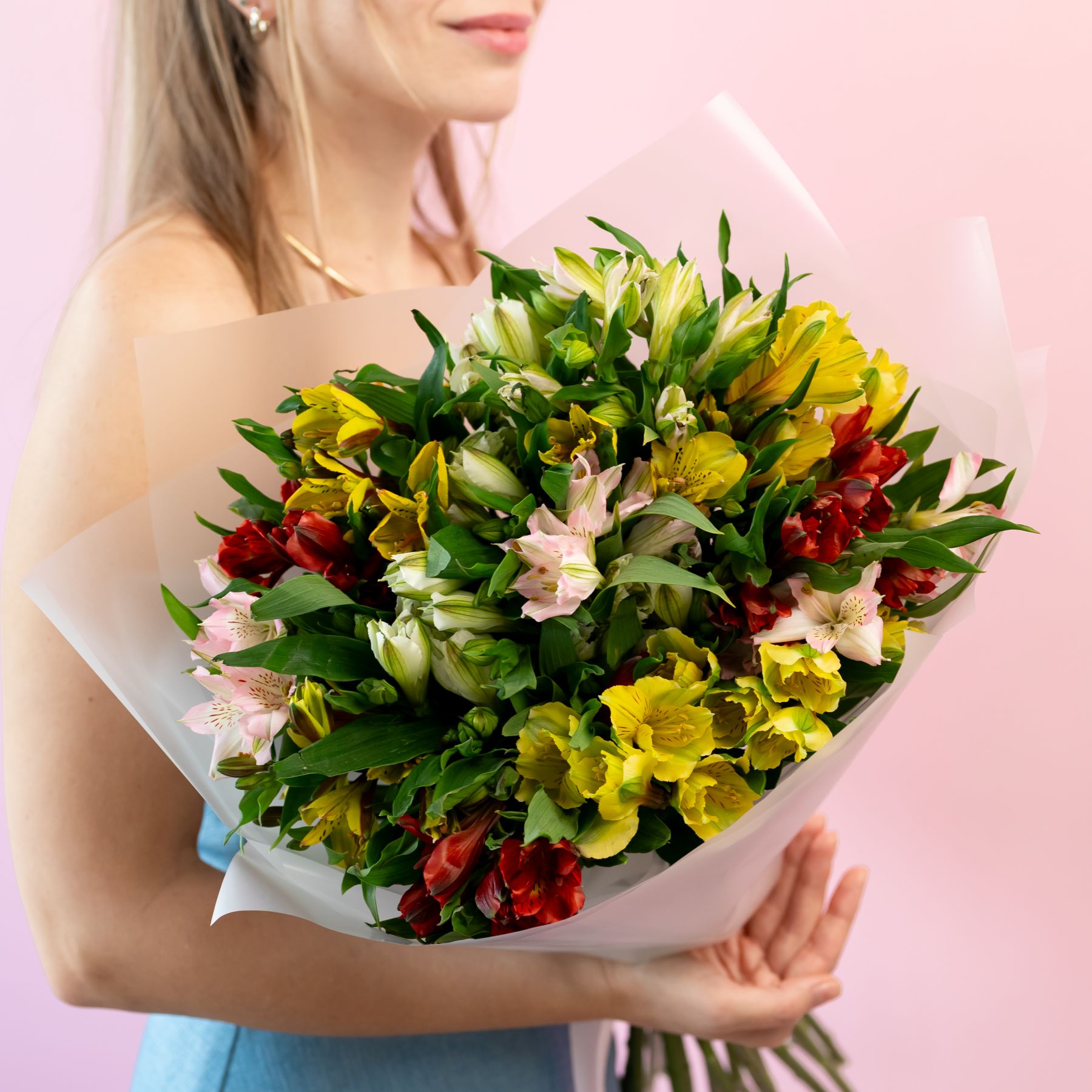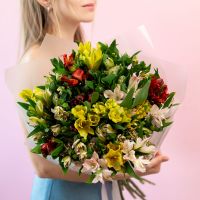 Состав букета может быть изменен исходя из актуального наличия и сезонности цветов, с сохранением цветовой гаммы букета