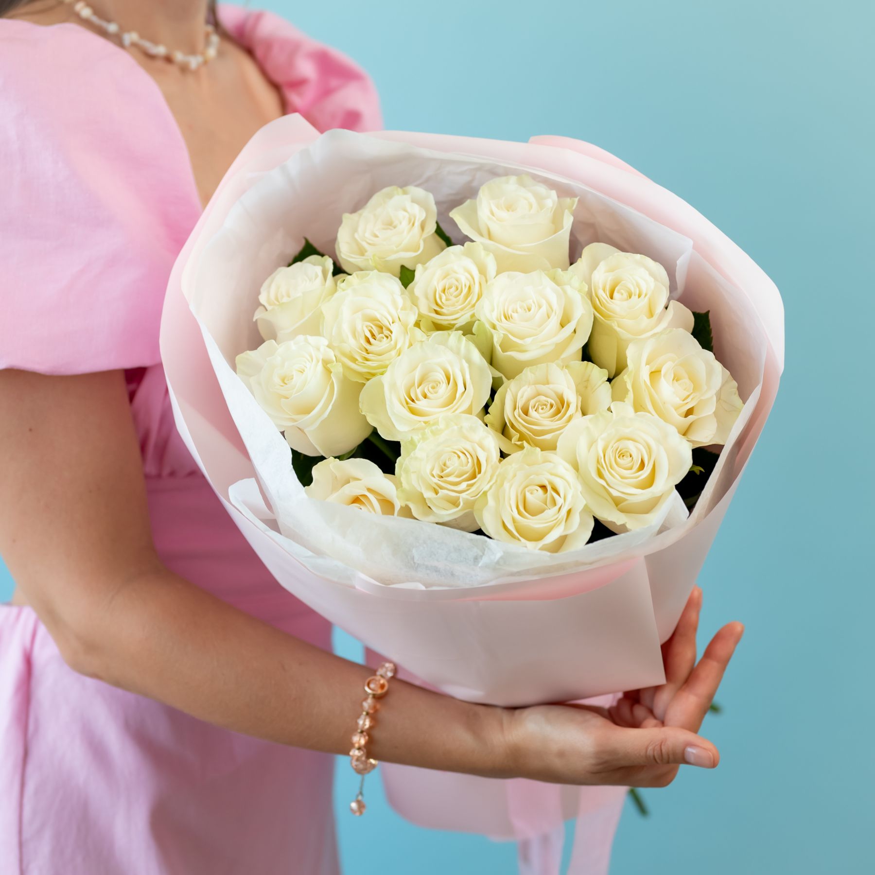 Состав букета может быть изменен исходя из актуального наличия и сезонности цветов, с сохранением цветовой гаммы букета