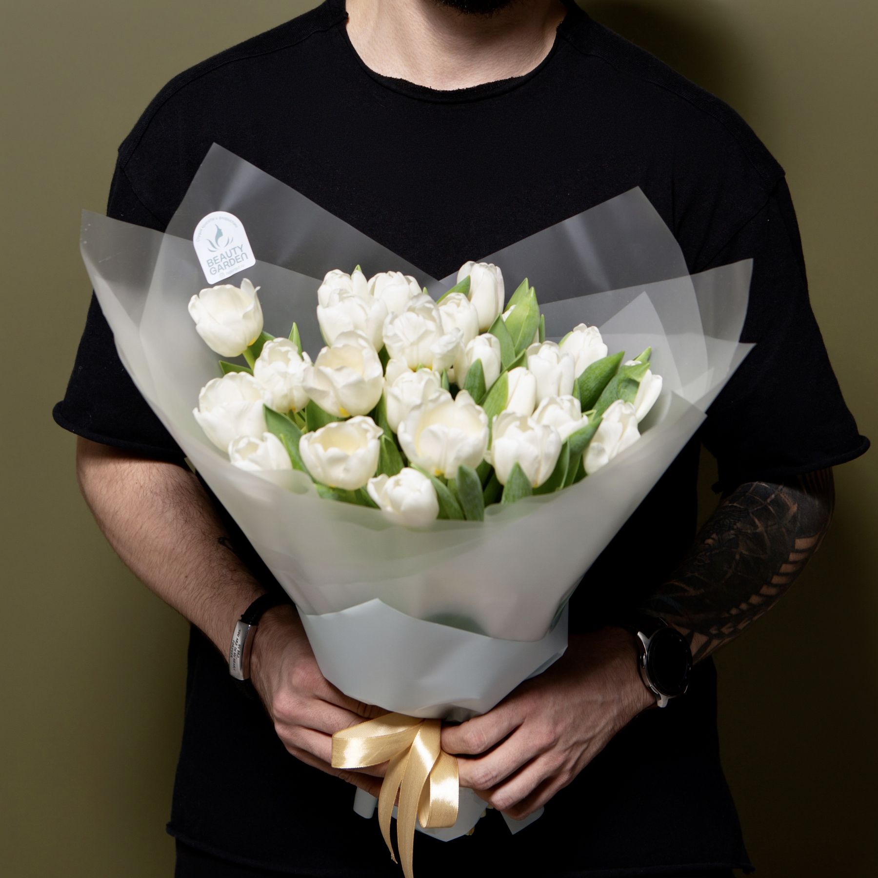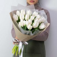 Букет из белых импортных тюльпанов в нежном оформлении. Цвет упаковки может отличаться !