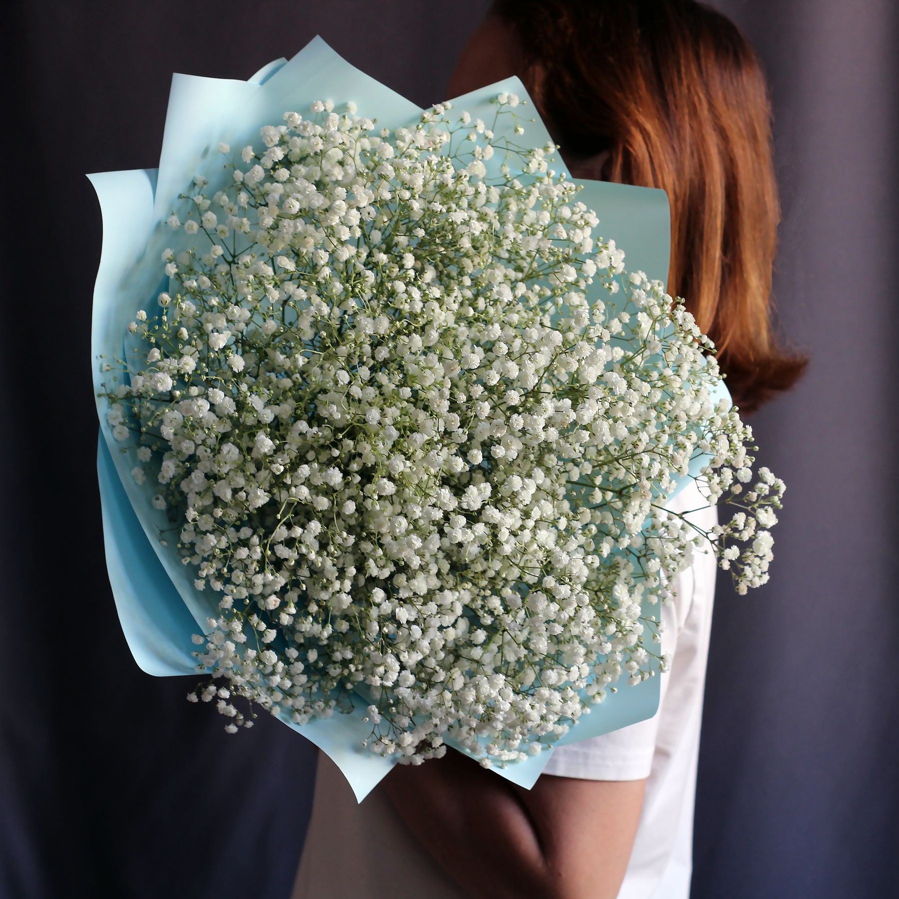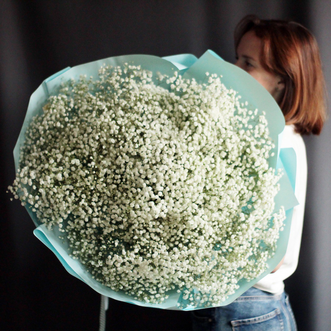 Букет из воздушной белой гипсофилы в оформлении.