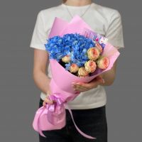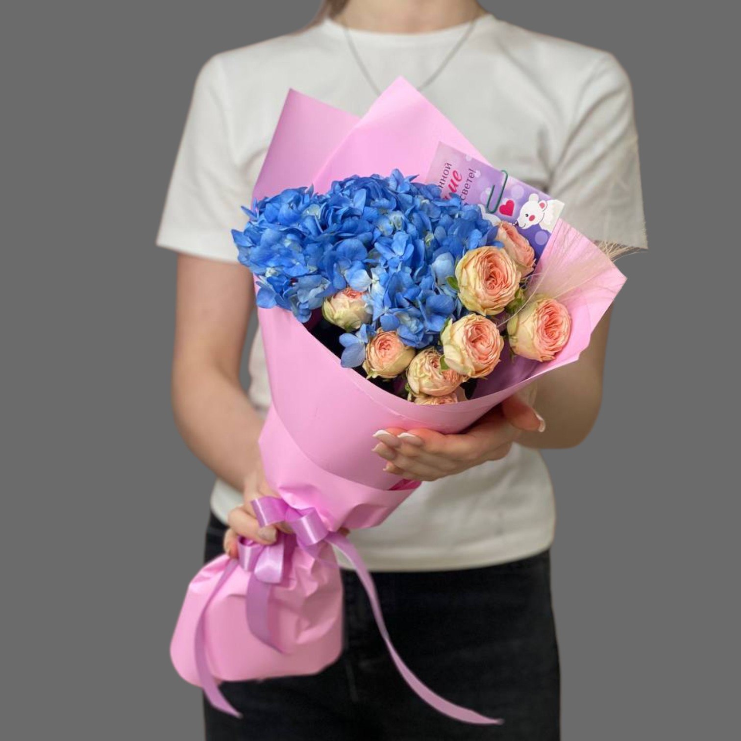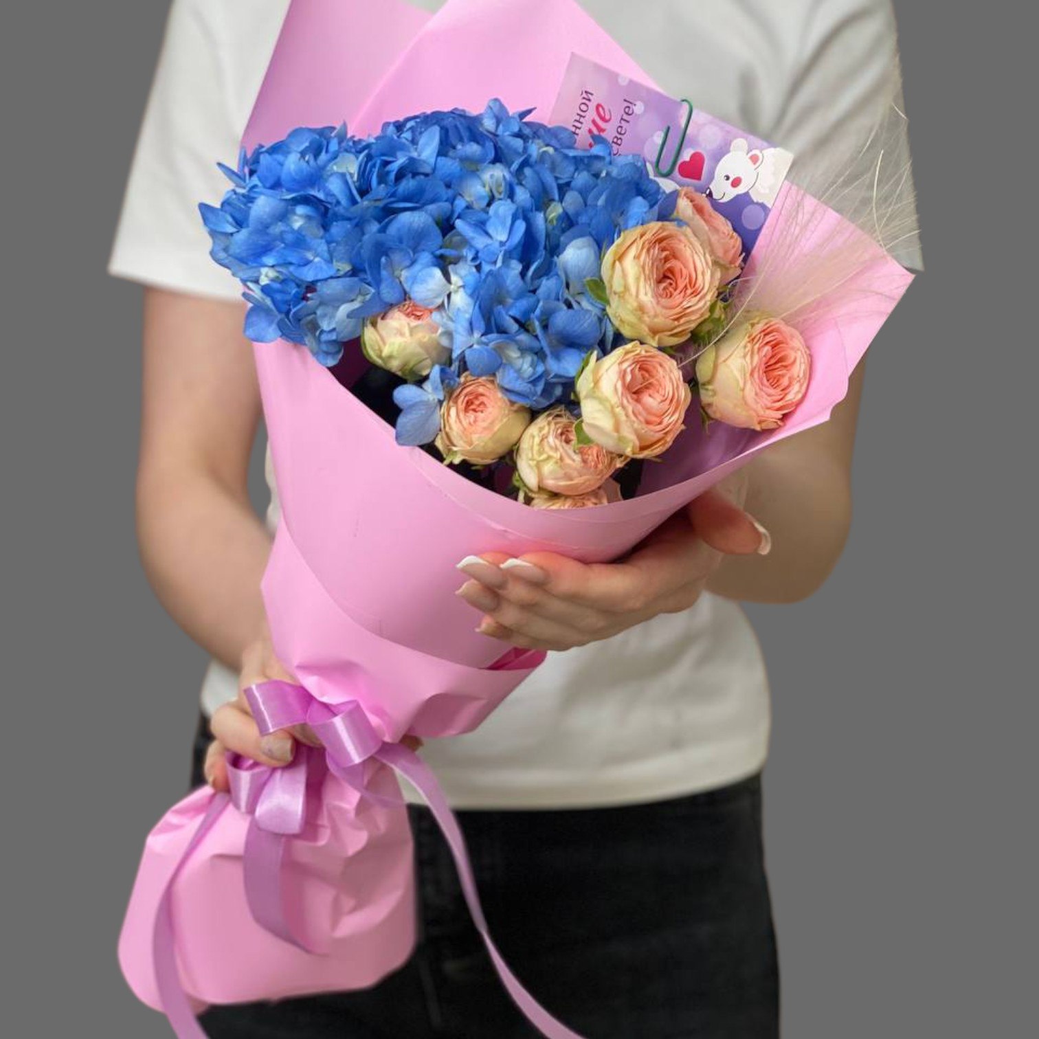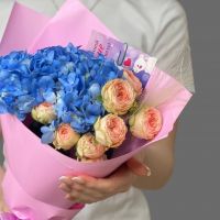 Состав букета может быть изменен исходя из актуального наличия и сезонности цветов, с сохранением цветовой гаммы букета. Открытка в состав букета не входит (представлена как пример).