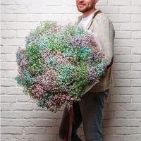 Пышный букет из радужной гипсофилы в оформлении. Цвет гипсофилы подбирается из наличия.