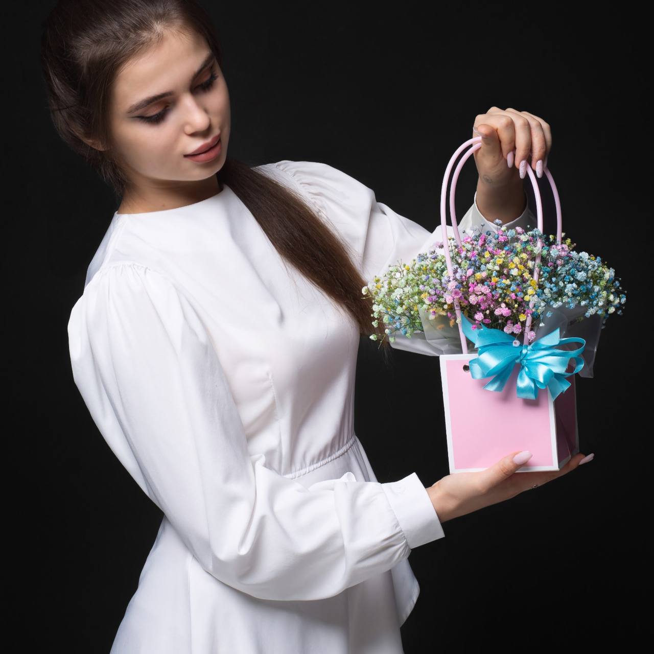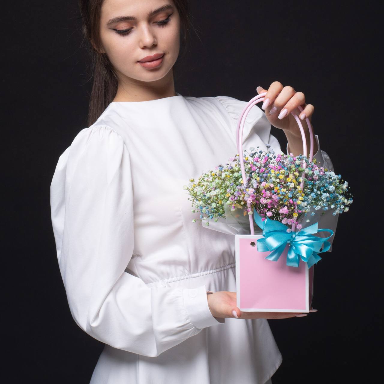 * Чтобы продлить жизнь цветов, через пару дней можно достать цветы из композиции и переставить их в чистую прохладную воду, предварительно сделав свежий срез.