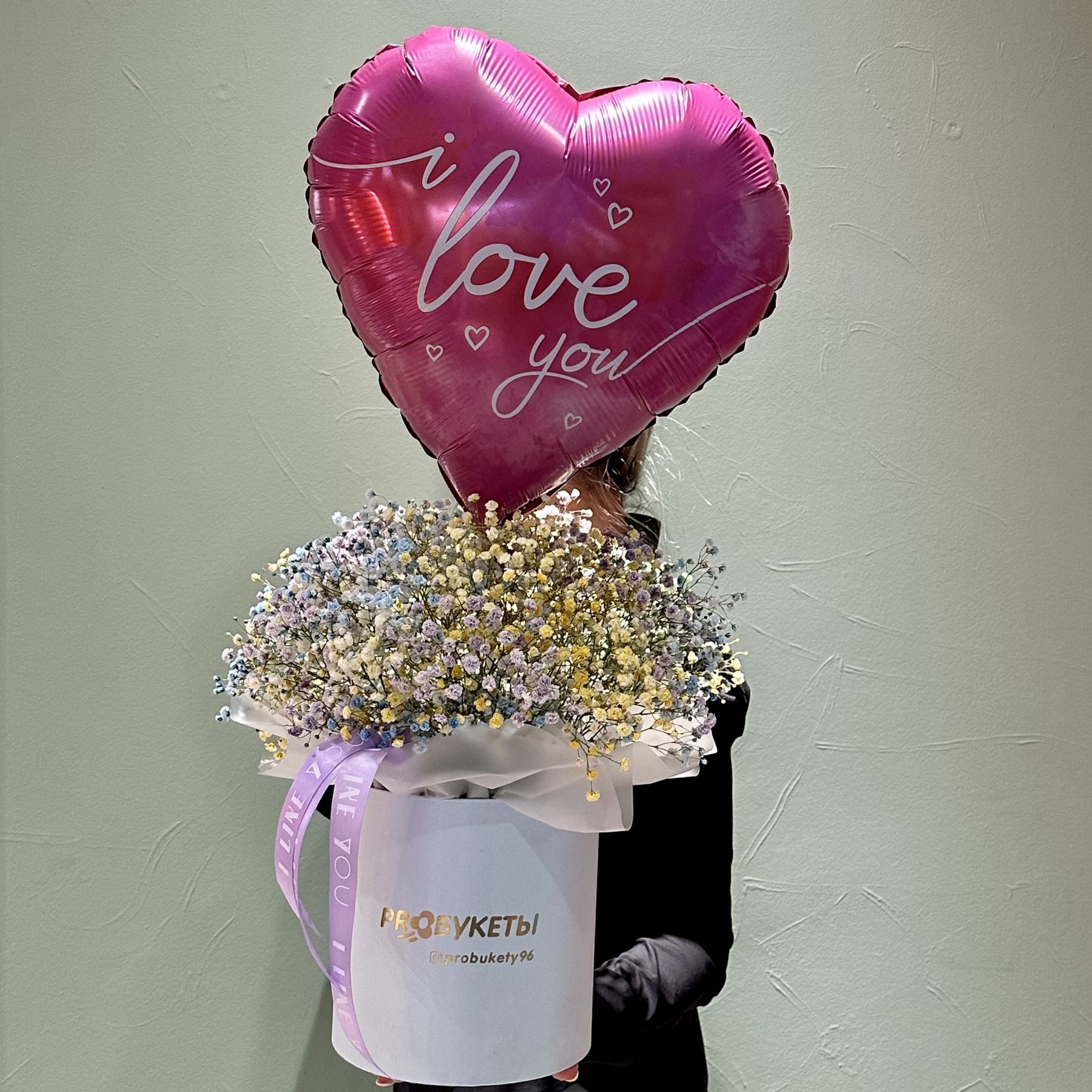 Цвет коробки и гипсофилы подбирается из наличия.