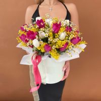 * Чтобы продлить жизнь цветов, через пару дней можно достать цветы из композиции и переставить их в чистую прохладную воду, предварительно сделав свежий срез.
