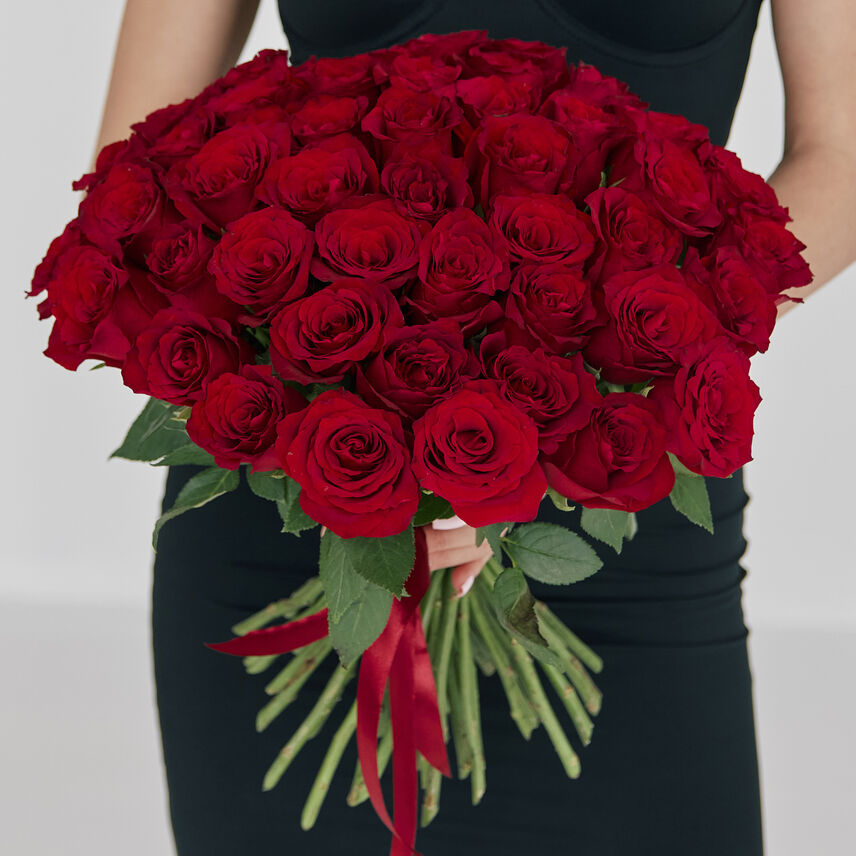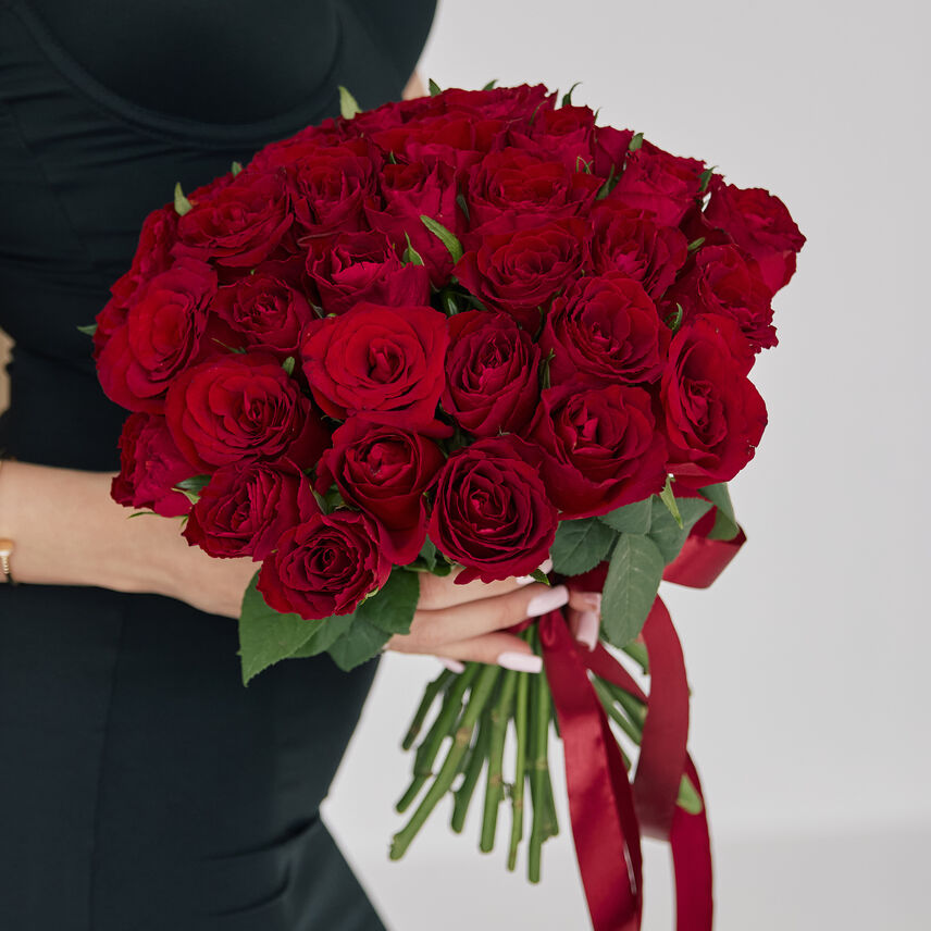 Красная роза 40 см Кения , перевязанная атласной лентой.