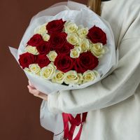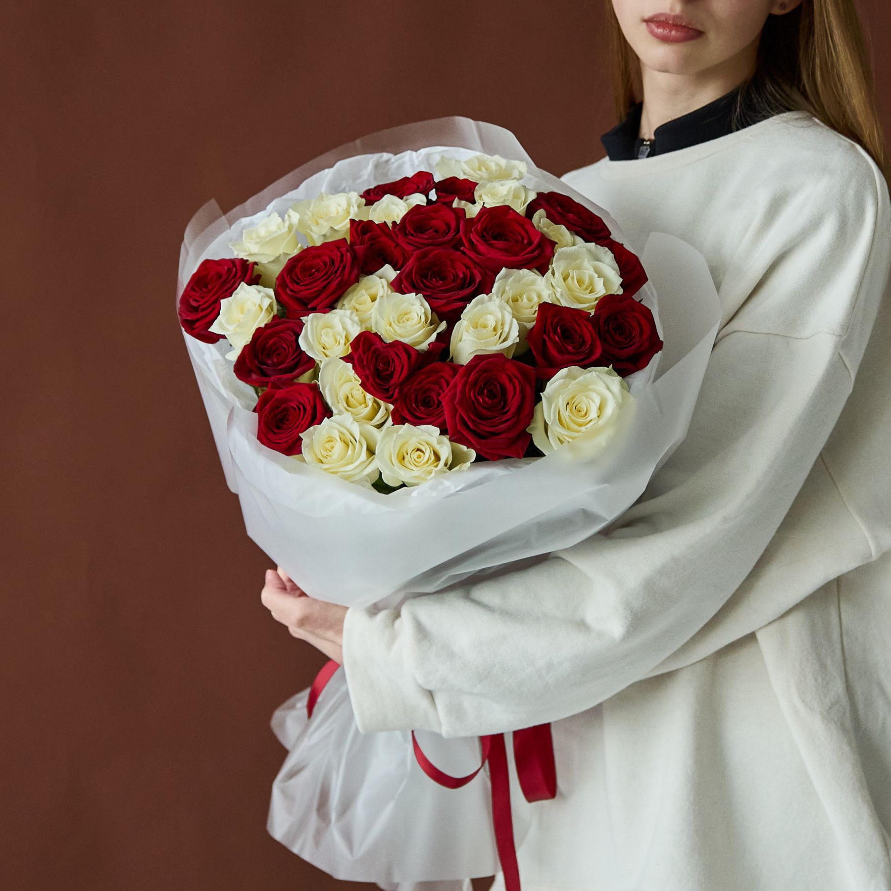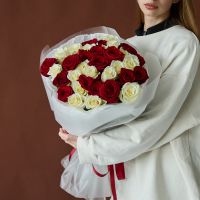Красные и белые розы 60 см в оформлении
