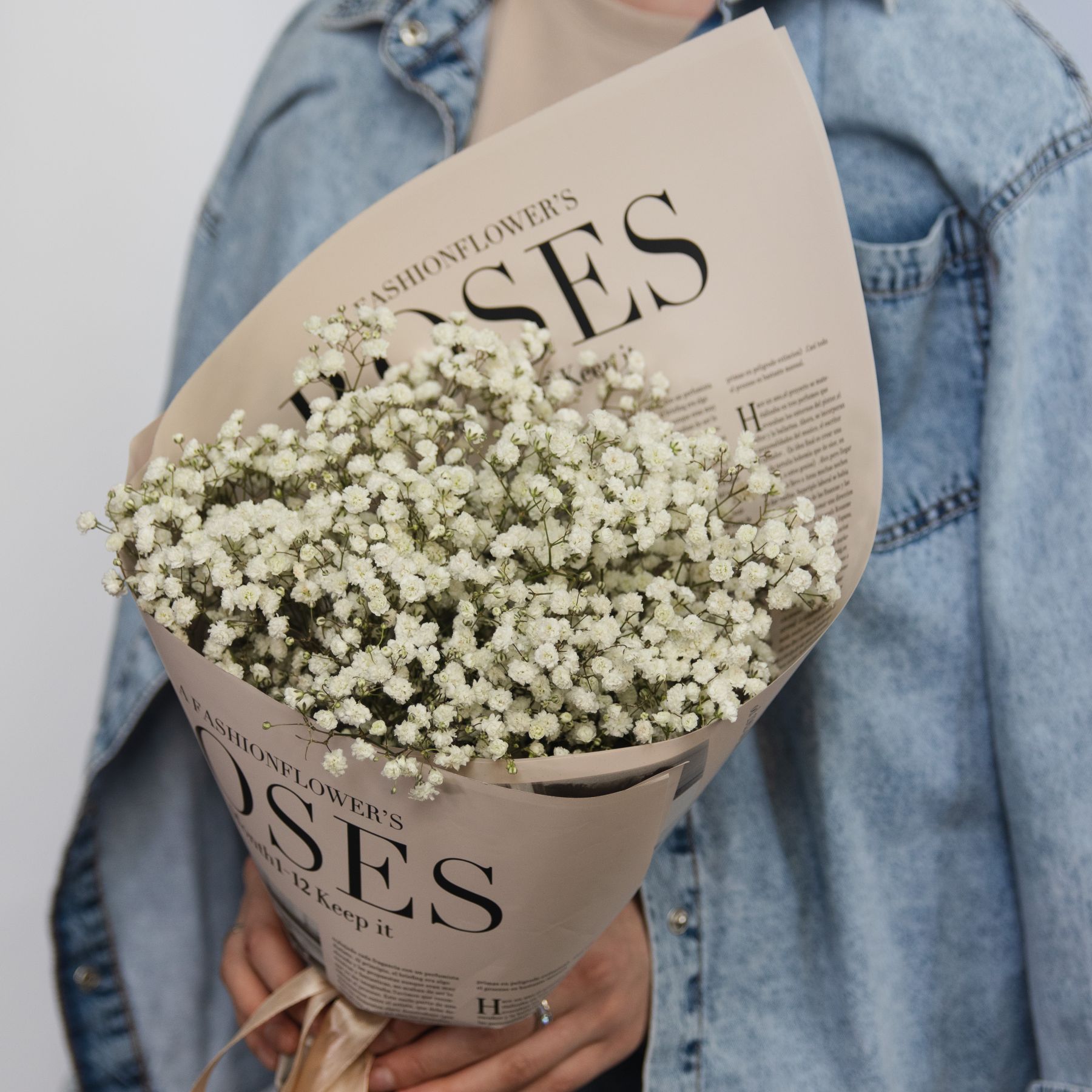 Нежный воздушный монобукет из гипсофилы в упаковке (5 веточек)