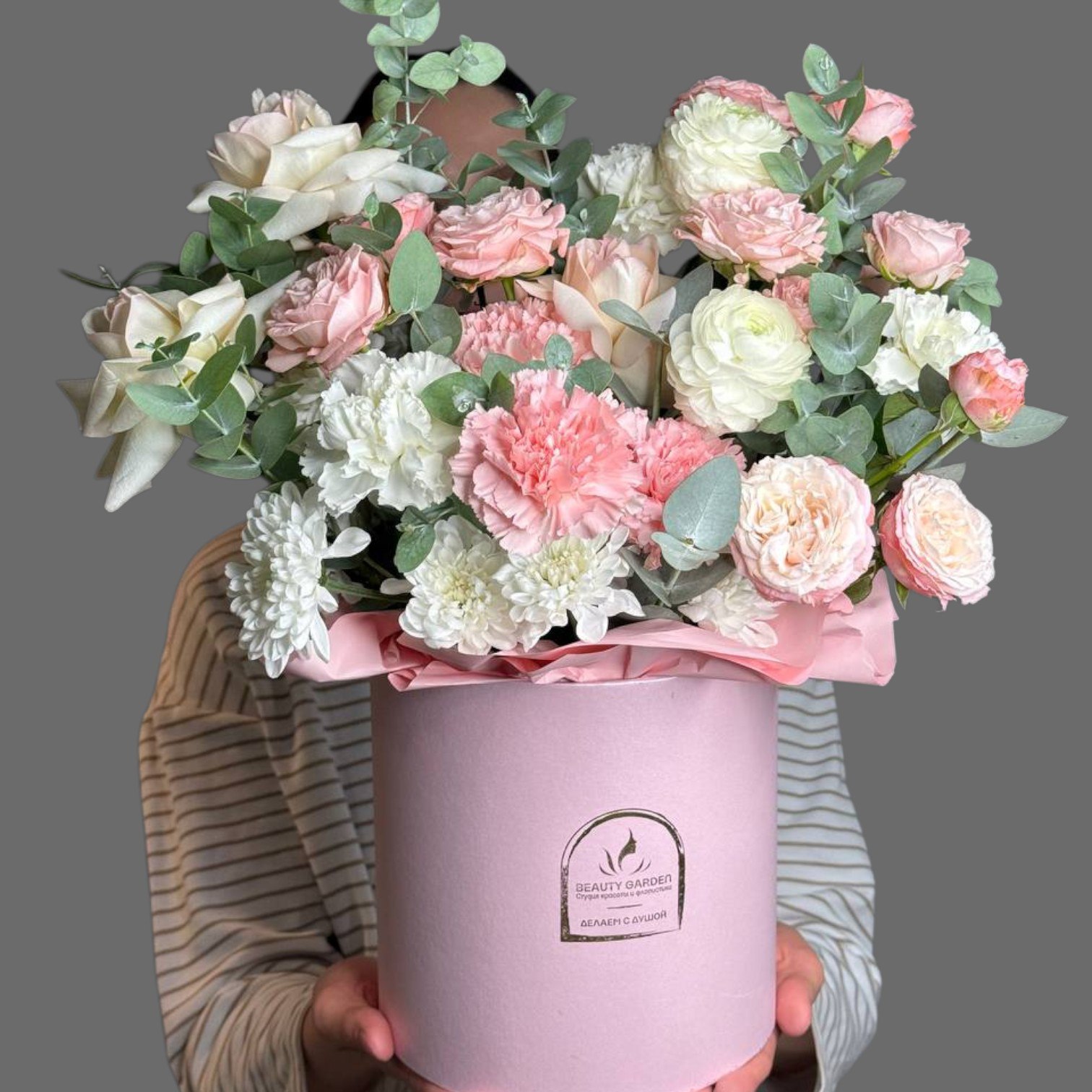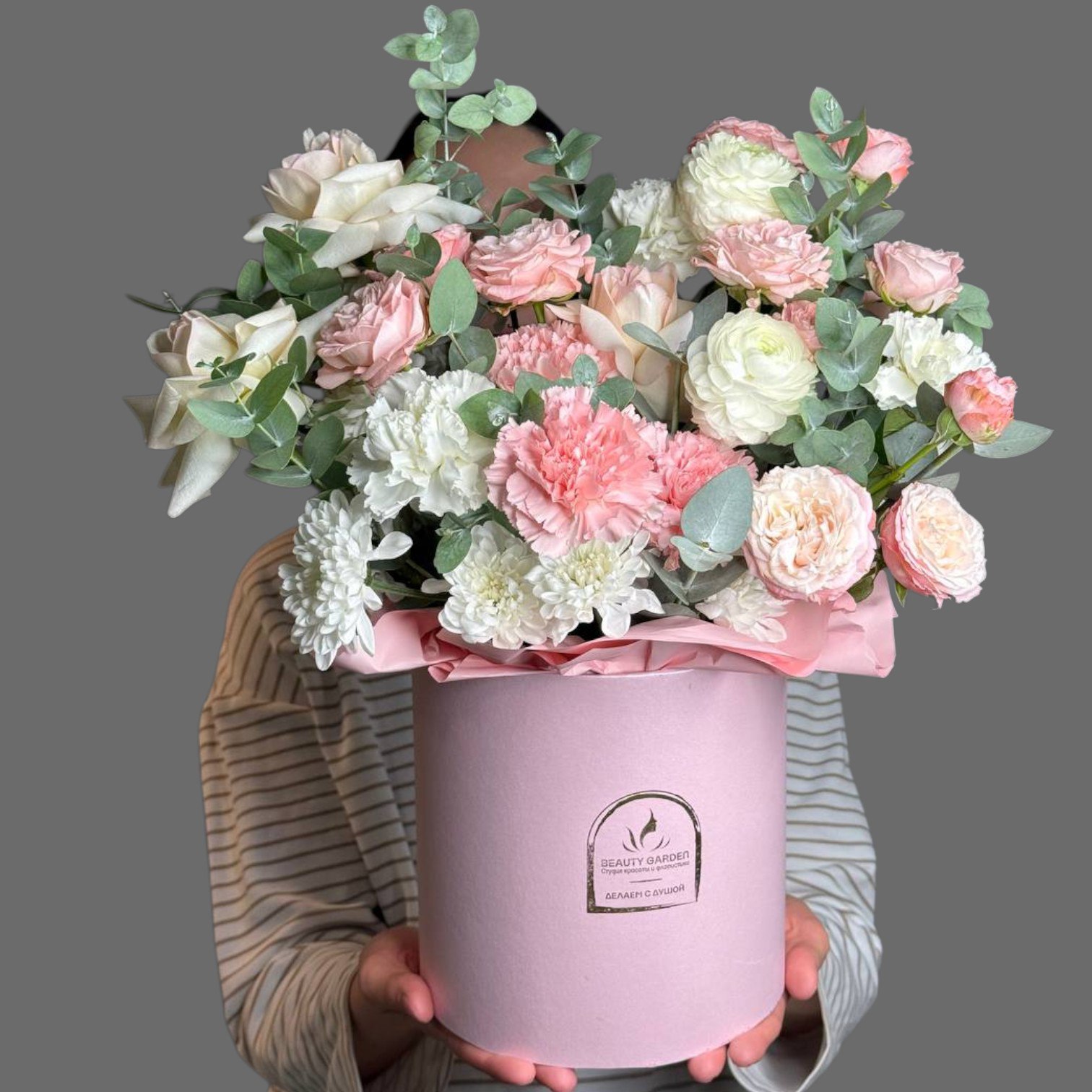 С букетом: инструкция по уходу + открытка с Вашими пожеланиями.