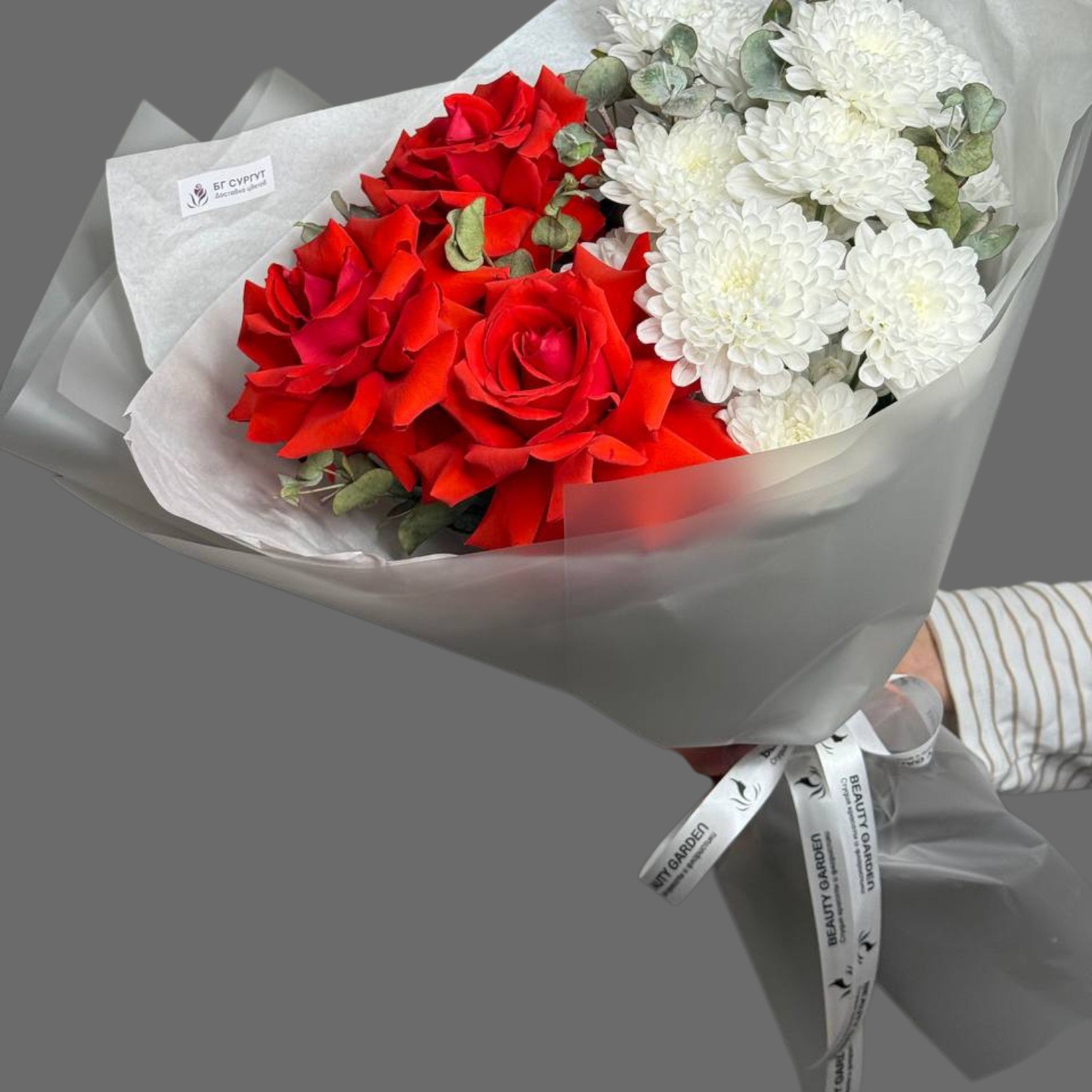 Состав букета может быть изменен исходя из актуального наличия и сезонности цветов, с сохранением цветовой гаммы букета