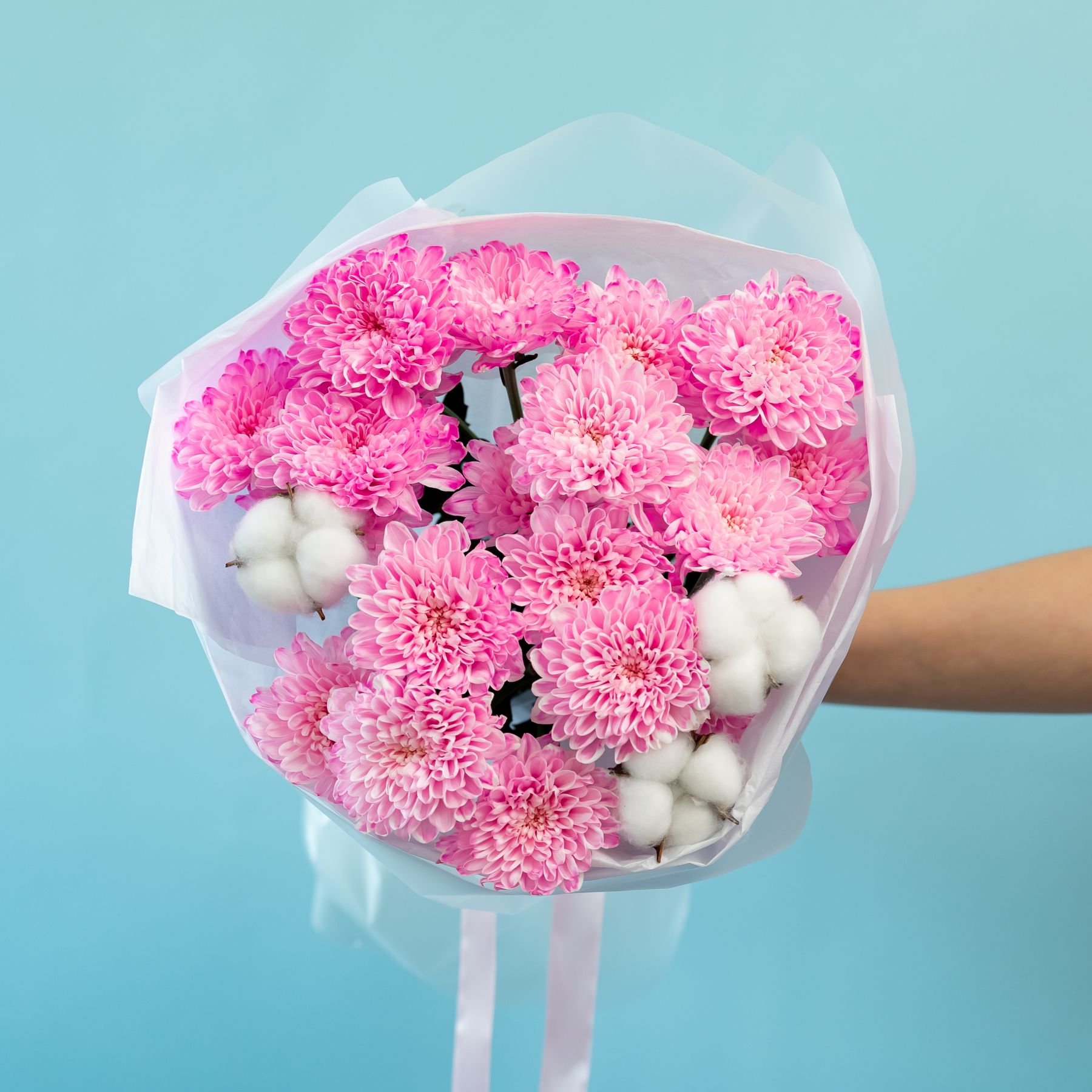 Состав букета может быть изменен исходя из актуального наличия и сезонности цветов, с сохранением цветовой гаммы букета