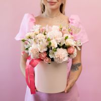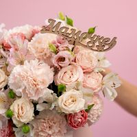 Состав букета может быть изменен исходя из актуального наличия и сезонности цветов, с сохранением цветовой гаммы букета